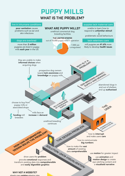 A social media animation using data visualisation to convey the severe issues surrounding puppy mills in the United States. Research, design process and outcome presented in a long-scroll format. Softwares used include Adobe Illustrator, Adobe After Effects and Procreate.